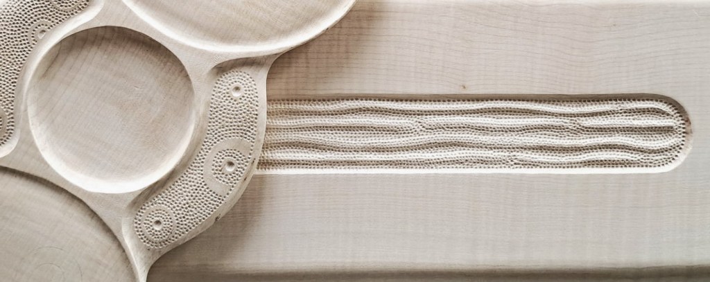 Chaque création est unique et nécessite des heures de travail minutieux, guidé par la passion de la matière et l’amour du détail : un nœud, la douceur d’un veinage, une texture révélée par le choix des finitions, la volupté ou la dynamique d’une courbe…